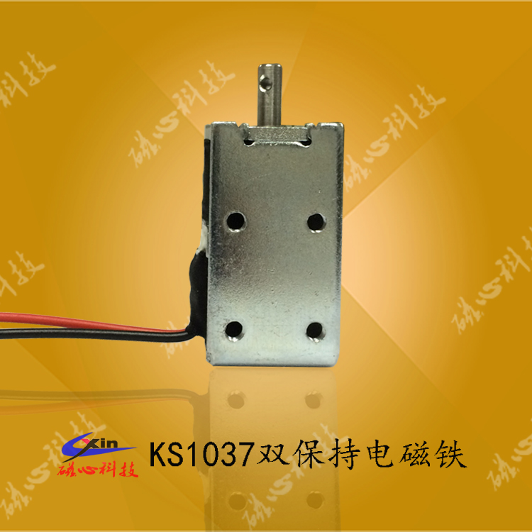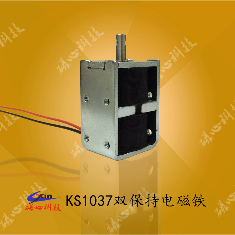 KS1040雙保持電磁鐵屬于微型推拉式電磁鐵,具有雙保持功能,產(chǎn)品可以在沒(méi)通電的情況下在永磁鐵的作用下保持在一個(gè)位置,保持力的大小可根據(jù)客戶(hù)的要求設(shè)定。電磁鐵廠家--磁心