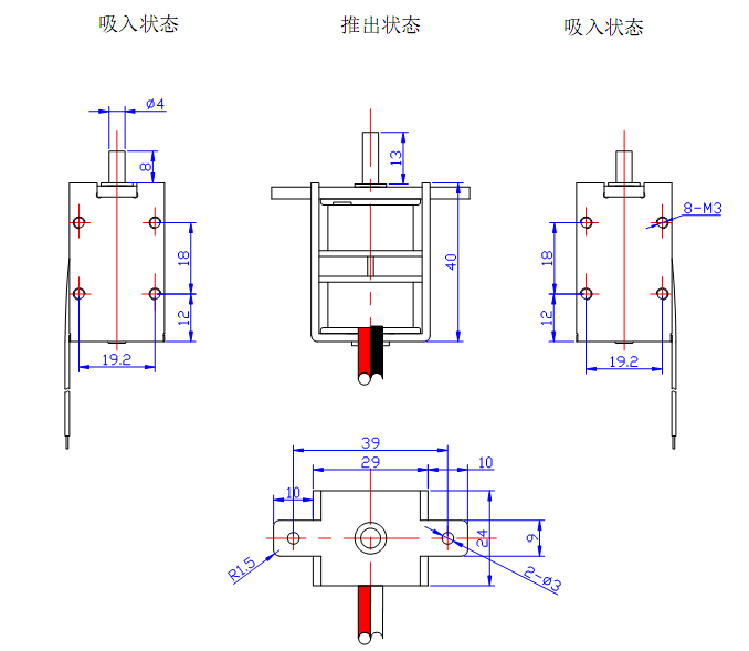 在電磁鐵斷電時(shí),滑桿在永磁體的作用下保持在一個(gè)位置(保持力的大小是有磁鐵決定),當(dāng)給電磁鐵通正向電時(shí)(只需要一個(gè)瞬間電),滑桿移動(dòng)到另一個(gè)位置(行程最大的位置),再