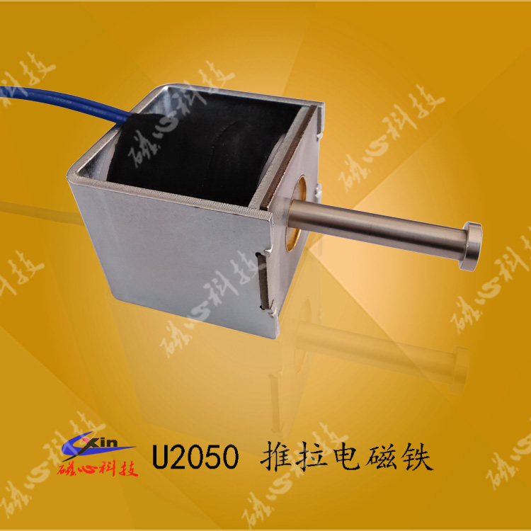 U2050  拉式電磁鐵屬于框架推拉式電磁鐵,產品在原有推拉式電磁鐵1250的基礎上進行改良,在有限的空間內達到長行程、大力量。