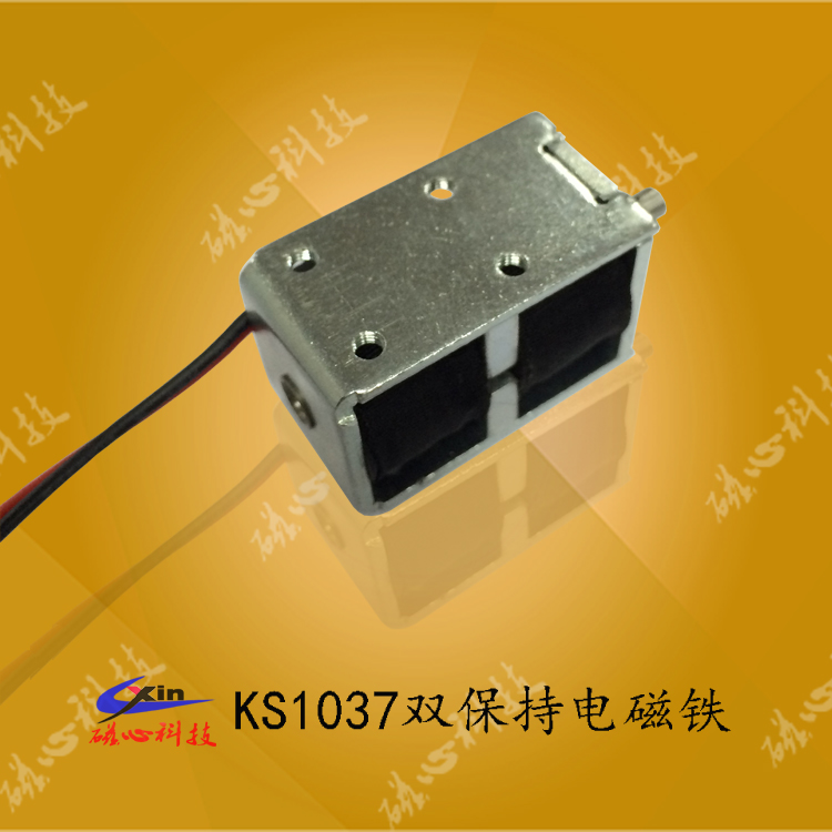 KS1037保持式電磁鐵是磁心科技電磁鐵廠家批量生產(chǎn)的一款推拉式雙保持電磁鐵,采用雙向保持的結(jié)構(gòu)、內(nèi)置永磁鐵,可以在有限的空間內(nèi)釋放出較大的磁力。