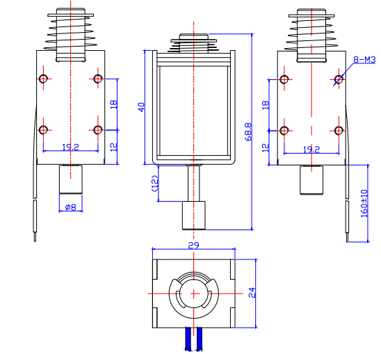 東莞電磁鐵廠家--磁心科技研發(fā)生產(chǎn)方形推拉電磁鐵、圓形推拉電磁鐵、異形推拉電磁鐵等,根據(jù)市場(chǎng)和客戶的需要我們不斷的研發(fā)新產(chǎn)品。其中U1040推拉式電磁鐵做工精致,體積小,行程和力量都適中。市場(chǎng)運(yùn)用非常廣泛,涉及自動(dòng)化設(shè)備、家用電器、汽車配件、紡織機(jī)械等產(chǎn)品。產(chǎn)品具體參數(shù)如下: