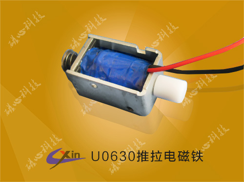 U0630 框架電磁鐵磁心科技大批量生產的一款微型推拉式電磁鐵,框架電磁鐵U0630可以做成推式電磁鐵和拉式電磁鐵,產品具有體積小、安裝方便、成本低被市場廣泛用于自動化設備、自動玩具、信報箱和儲物柜等做為動作高精