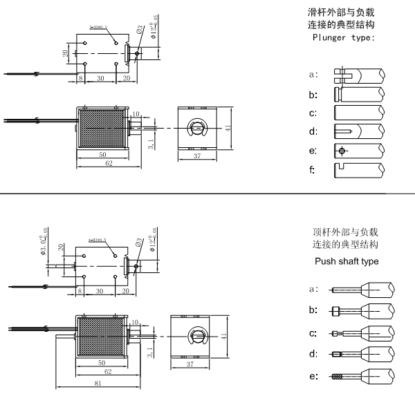 U1249推拉式電磁鐵屬于框架類電磁鐵,產品的尺寸和力量適中,適用于自動化設備和安防器械設備,產品外殼有8個安裝螺紋孔,可做成推式電磁鐵和拉式電磁鐵兩種結構,磁心科技